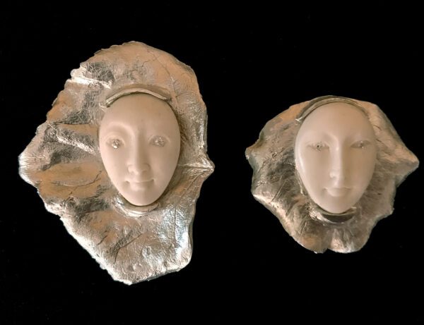 Rhonda’s new collection illustrates the unity of humans and trees. Crafted from fine silver with deer bone-carved faces and exquisite gems, it is inspired by the trees of New Mexico